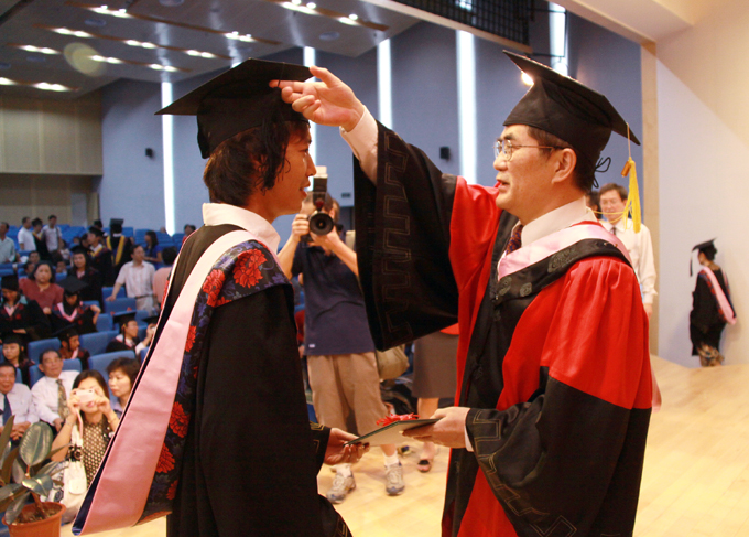 校长、博士生导师丘进为毕业生拨置帽穗