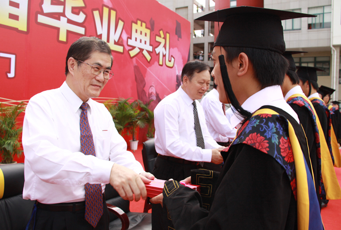 典礼结束后, 2009 届境外生学位授予仪式在王源兴国际会议中心举行。校长、博士生导师丘进,副校长、博士生导师徐西鹏为获得学士学位的境外生拨置帽穗和颁发学位证书。