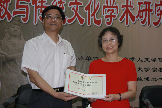 辅仁大学宗教学系主任黄怀秋教授还受聘我校客座教授,张禹东副校长为其颁发聘书。