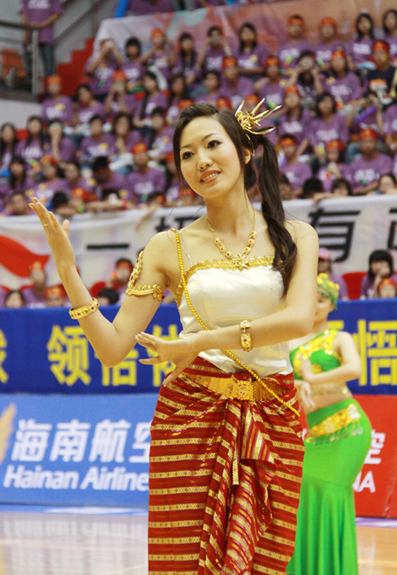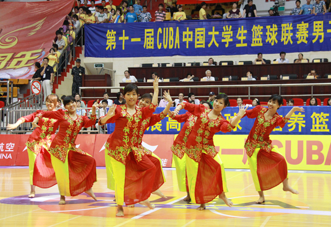 华侨大学学生在比赛间隙表演民族舞蹈