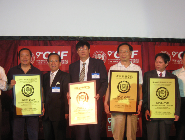 2009 中国饭店业年会暨第 9 届中国饭店论坛(简称“ 年会 ”)于今年 6 月5-7 日在广州香格里拉大酒店隆重召开。在本次大会上,我校旅游学院获得年会颁发的“全国旅游及饭店业优秀人才培养基地”称号。此殊荣的获得,是业界对我校旅游学院在饭店管理教学和毕业生素质的高度肯定,充分说明了我校旅游学院在全国旅游院校中人才培养质量的领先地位。