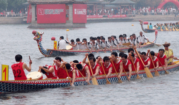 龙船劈波斩浪,观众欢声雷动。2009联发房产“嘉庚杯”“敬贤杯”海峡两岸龙舟赛23日在集美龙舟池举行。共有来自海峡两岸以及美国、马来西亚的70支代表队、2000多人参加角逐。我校华文学院龙舟队在这场群雄争霸龙舟池的精彩好戏中荣获教工公开组亚军。