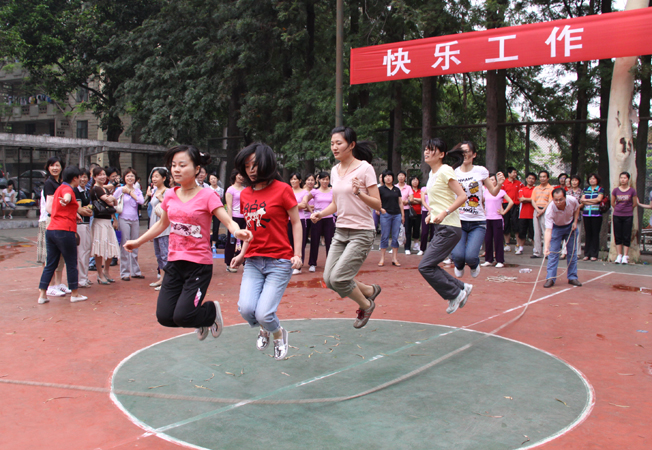 比赛规定项目由各参赛队19名队员进行三种跳绳的表演赛,自选项目由15至20名队员进行表演赛。比赛现场高潮迭起,特别是各支参赛队的自选项目,各支参赛队的部门工会自创自导,自娱自乐,并以饱满的精神状态投入比赛,充分展现了我校教职工快乐工作、健康生活,朝气蓬勃、奋发向上的精神面貌,比赛现场掌声欢呼声不断。