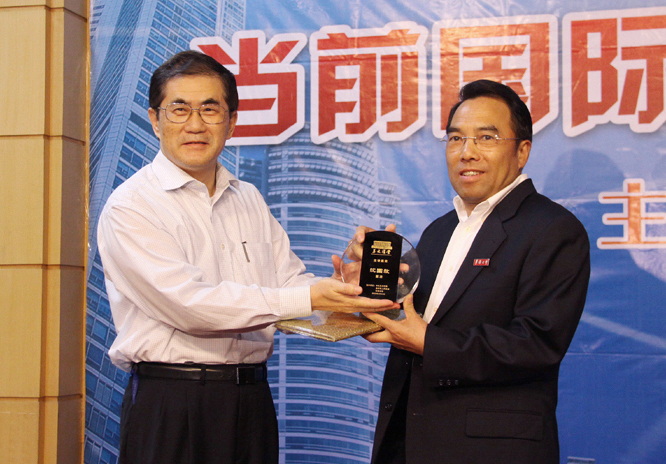 丘进校长还向沈国放先生赠送了“华大讲堂”主讲嘉宾纪念牌。