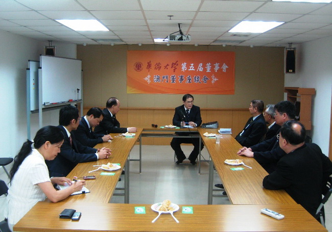 丘校长向与会董事汇报了学校现状、面临的形势以及发展思路,征求各位董事的意见、建议。唐志坚副秘书长说,华侨大学这些年为澳门培养了许多治理澳门的人才,为澳门发展做出很大贡献,得到特区政府的肯定;他赞同丘校长提高学校教学科研水平的办学思想,对多校区办学模式提供了有益建议。刘晓航董事说,福建与澳门有密切的亲缘关系,四分之一的澳门居民是福建籍,澳门与福建有着广泛的文化和教育方面的联系,华侨大学是一个重要桥梁;他希望学校多招一些澳门学生,在招生时间和方式方法上可以更加灵活。林金城董事指出目前在澳门的公务员中有超过10%是华侨大学培养的,不少人还担任了重要职务,希望学校加大对澳门学生的培养力度。