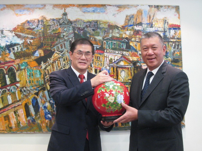 华侨大学分子药物研究所所长许瑞安教授、材料学院副院长林志勇教授、澳门联络处主任杨建云、外事处处长项士敏等参加会见。