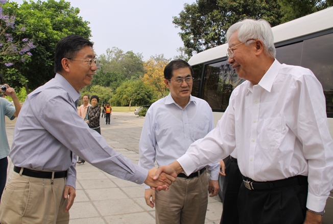 全国政协原副主席、致公党中央原主席、著名行政法学家罗豪才今日下午莅临华侨大学调研。 在法学院会议室,罗豪才与校长丘进、党委书记李冀闽、老校长庄善裕,法学院领导和教师及致公党华大总支主委等亲切座谈。