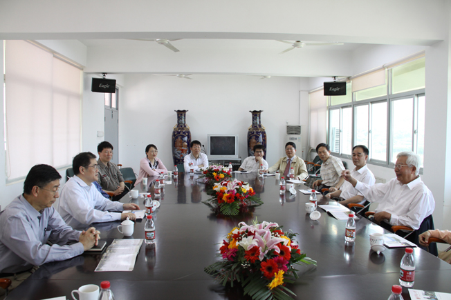 丘进(左一)欢迎罗豪才(右二)