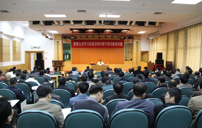 3 月 28 日 ,华侨大学举办了深入学习实践科学发展观活动中层干部专题研讨班,为期一天,上午集中学习,下午分组讨论。校领导丘进、李冀闽、关一凡、朱琦环、徐西鹏、张禹东、刘斌,全体中层干部参加了学习研讨。