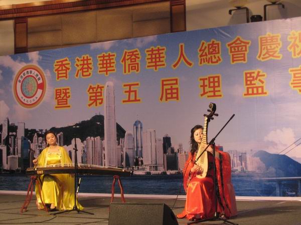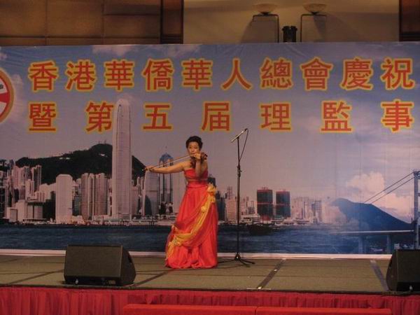 3 月 29 日晚上,香港华侨华人总会成立十五周年庆典在香港九龙湾国际展贸中心举行,我校音乐舞蹈学院应邀在庆典晚会上表演小提琴独奏《新疆之春》、琵琶古筝重奏《送我一支玫瑰花》、女高音独唱《玛依拉变奏典》、男高音独唱《母亲》等节目,受到全场嘉宾的热情欢迎。国务院侨务办公室副主任许又声、全国侨联主席林军等出席庆典晚会并观看演出,我校党委副书记、纪委书记朱琦环到会祝贺。