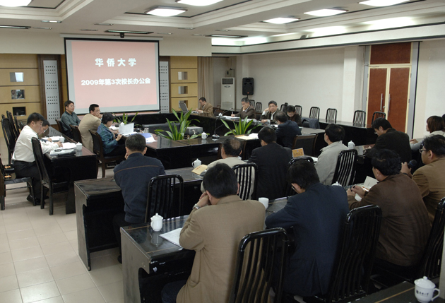 新学期首次校长办公会今日上午在李克砌办公楼五楼会议室召开,对学校2009年工作要点作进一步讨论修改。除参会的校领导外,会议还邀请机电学院院长江开勇,土木学院院长张云波,化工学院院长、校工会副主席王士斌,材料学院副院长林志勇,法学院院长王敏远等学院代表,机电学院博士生黄国清、商学院硕士生张美云、法学院2006级王晨楠、商学院2005级缅甸留学生林静怡等学生代表,民主党派代表庄培章、蔡振翔和学校职能部门负责人等20余人旁听。这是华侨大学民主决策、政务公开的新举措。