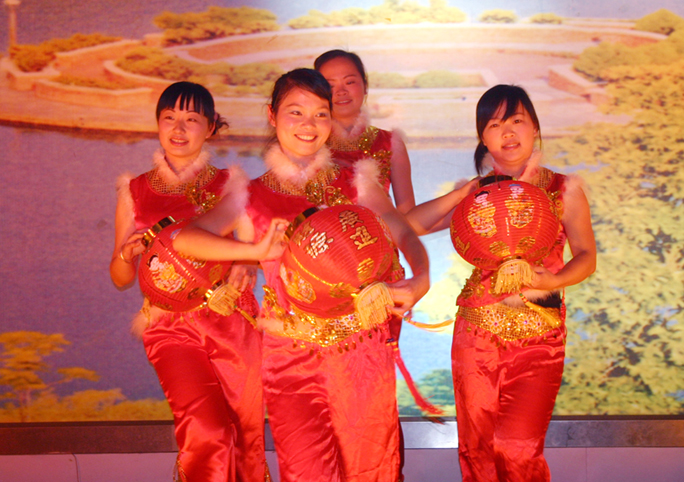 幼儿园教师表演舞蹈《喜洋洋》。