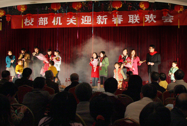 由华侨大学机关总支、机关工会主办的校部机关迎新春联欢会16日晚在南苑餐厅二层多功能厅举行。副校长吴季怀、刘斌,老领导施玉山、杨翔翔、黄炎成、李孙忠、吴道明、吴永年等出席联欢会,与校部机关工作人员喜迎新春佳节。