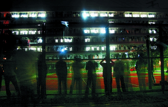 华侨大学36号楼40间寝室灯光显示“3.27”字样。 (庄丽祥 林志安/摄)