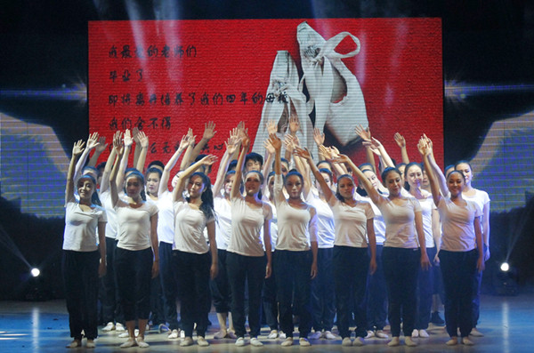 据悉,本次晚会由2010级舞蹈学(海外教育)班主任刘爽老师亲自策划并担任现场导演,分别以“舞”、“光”、“10”、“色”四幕,展现出了2010级舞蹈学同学们的舞蹈精神与感动。芭蕾舞《榕树仙子》、男子群舞《父亲》等,一连串精彩绝伦的舞蹈表演折服了现场观众。最后,晚会在热情洋溢的民族舞蹈《叭一口》中落下帷幕。