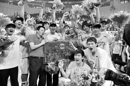华大男篮庆祝夺冠 财友 摄
