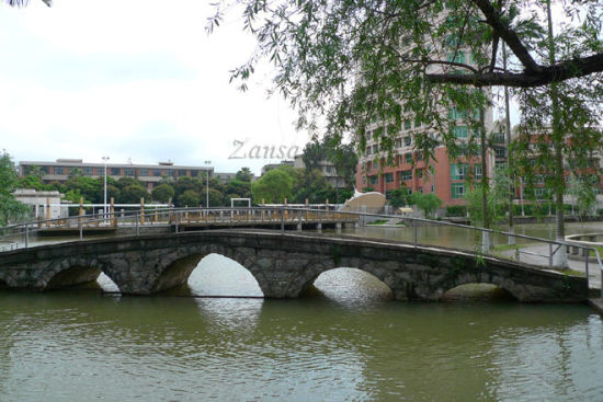 此湖由旅美华侨陈秋中投资兴建,为校园内规模最大的水景观。
