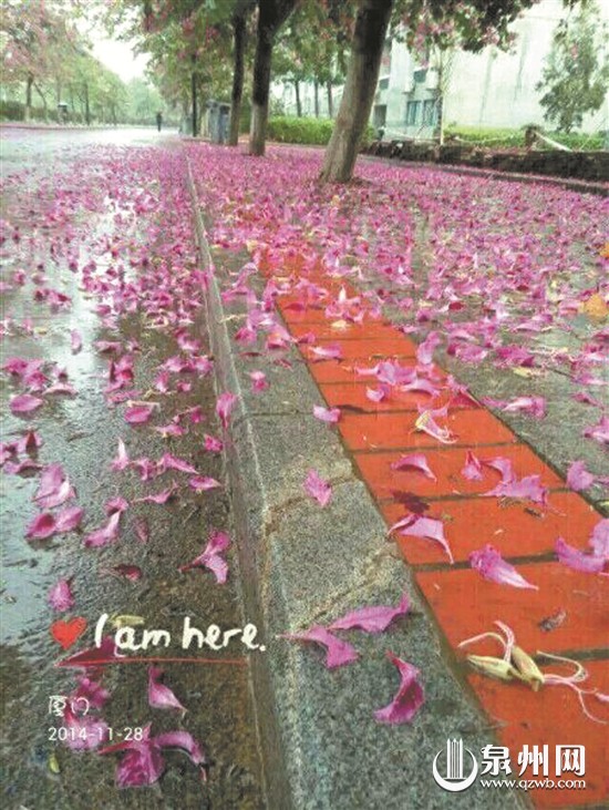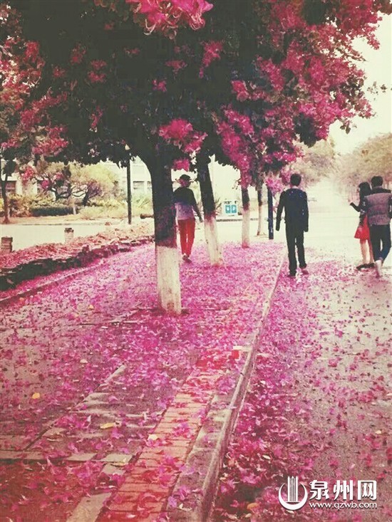 “校园下花,分分钟走红地毯的感觉。”一位华大学子如此说。 (请图片摄影作者联系早报以支付稿酬)