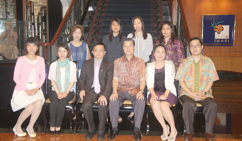 (本报记者邓磊报道)中国华侨大学教务处处长曾志兴一行于4月23日抵达泗水,参加印尼智民学院举办的2015年赴华留学展。24日中午,华大校董、华大印尼校友总会会长邓仲绵在泗水万豪酒店宴请曾志兴处长,及随行的中国华侨大学国际学院邹冰心、华文学院招生办张晓岚、文学院院办刘恰。华侨大学印尼代表处处长王其君,华大印尼校友总会财政严敏娟、副财政许丽婷、理事钟小燕及校董助理张淑雯等人出席。