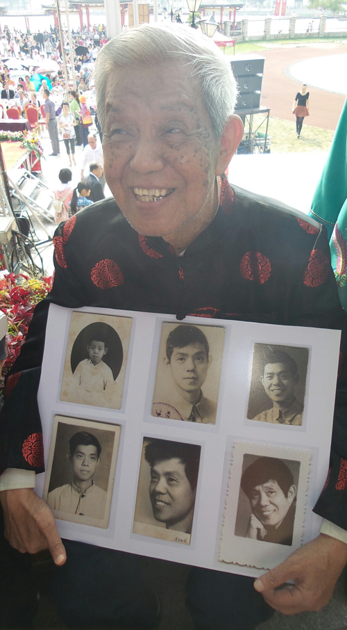 年过8旬的音乐老師陈源清拿着自己年轻时候的照片坐在长椅上,照片上的他凛然是一名帥小伙儿。如今虽然岁月在他脸上印下了痕迹,但是却为他留下了众多学子。几名从香港过来的学子纷纷走到老人身边共同追忆当年往事并现场共同唱起当年老師创造的歌曲,气氛融洽令人感动。