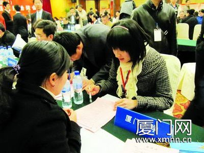 本报讯(文/图 记者 吴笛 通讯员 陈雪莲)在昨天上午的留洽会上,高校受到海外留学人员的追捧,而一些企业的招聘摊位前,却相对冷落。一个多小时里,厦门大学就接受了30多位海外归国人员简历,而年薪高达60万元的厦门银鹭集团有限公司的港口起重机技术总工,却无人问津。