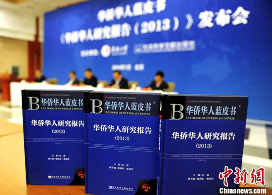 1月16日,第三部华侨华人蓝皮书——《华侨华人研究报告(2013)》发布会在国务院侨办举行。中新社发 张勤 摄