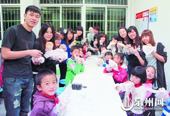 早报讯 (记者 刘波 通讯员 陆文杰 吴嘉祺 文/图)11月13日下午,德化县雷峰中心小学的小朋友又一次迎来华侨大学“萤火之光”境外生志愿者团队的53名爱心使者。这次小朋友不但收到书籍等礼物,还和大哥哥大姐姐一道,亲手制作了美味的汉堡包。