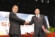 【本報海峽西岸新聞中心記者黃瑤瑛、實習記者卓曉熹泉州電】博鰲亞洲論壇秘書長龍永圖日前受聘為福建泉州華僑大學名譽教授。華大校長丘進在陳嘉庚紀念堂為其頒發名譽教授聘書,並佩戴華僑大學校徽。