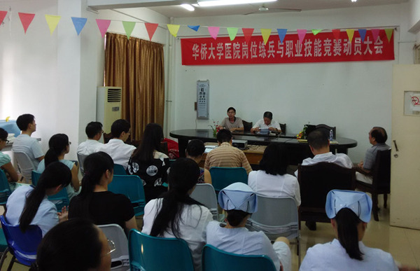 6月30日下午,华侨大学校医院全体医务人员召开《医院岗位练兵与职业技能竞赛动员大会》。2015年4月校医院组成以陈庆煌为组长,马必胜、邹循东、张新民、蔡晓阳为副组长,黄亚萍、朱逊贤等7位组员在内的岗位练兵考核领导小组,筹划准备校医院2015年度的岗位练兵工作。