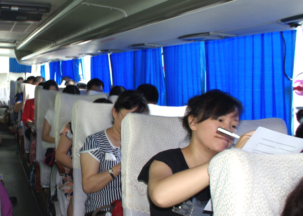 在往返校车上,校档案馆利用空闲时间组织了档案业务知识问答。