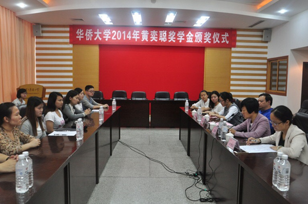 5月26日下午,“黄奕聪奖学金”颁奖大会在陈嘉庚纪念堂二楼会议室举行。来自全校不同学院的17名同学每人获得该奖学金3000元人民币奖励。这也是黄奕聪奖学金首次奖励华大学子。
