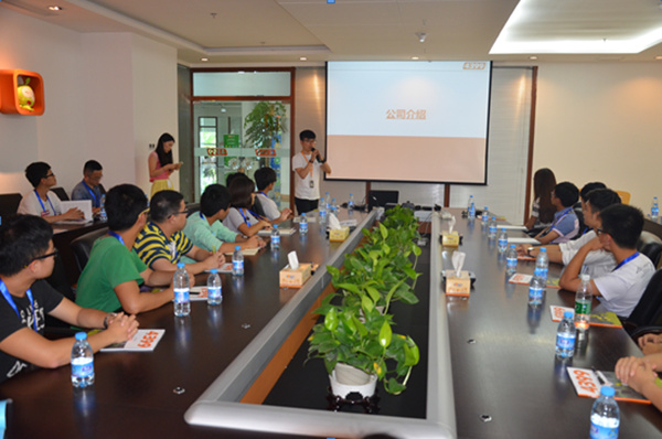 四三九九人事资源部的张洁经理和洪坤鹏主管带大家参观了公司的内部环境。轻松愉快的办公室氛围展现着互联网公司的独特性,公司职员认真严谨的工作态度也让同学们印象深刻。运动休闲区设施一应俱全,食堂内部环境舒适整洁,这些都透露出企业对于员工的人性化关怀。