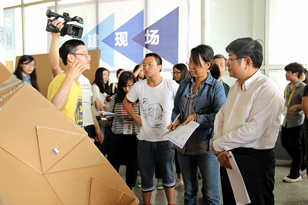 此次决赛同时也是2015海峡两岸青年学子光明之城实体建构体验营的系列活动之一。决赛共有海峡两岸7所高校24个团队进入最后角逐。比赛要求选手们用瓦楞纸板在一个不超过9平方米的面积内进行建筑设计及建造活动,在兼顾外形、创意、结构、功能、环保等要素的基础上用营造出一个极具特色的搭建庇护体。24个团队于5月8日、9日在王源兴国际会议中心一楼展厅进行了实体搭建。