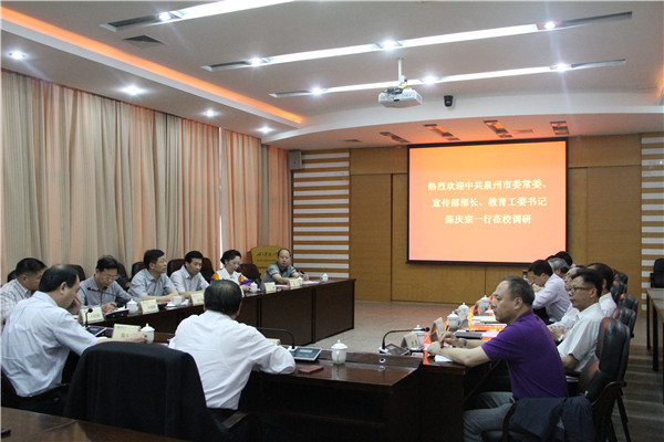 5月11日下午,中共泉州市委常委、宣传部长、教育工委书记陈庆宗率队到我校调研,校长贾益民、副校长曾路在泉州校区热情接待陈庆宗一行并举行座谈。