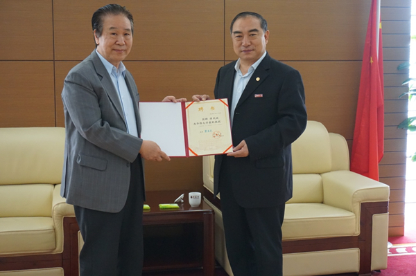 贾益民对薛凤旋夫妇的到来表示欢迎,双方互赠书籍并进行了友好交流。随后,贾益民向薛凤旋颁发聘书,聘请其为华侨大学兼职教授。贾益民表示,希望今后薛凤旋可以与华大在相关学科领域、科研项目进行合作并提出指导与建议。