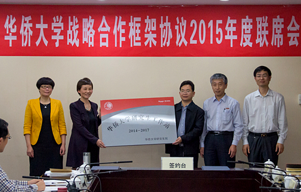 近日,我校与惠安县人民政府举行2015校地战略合作框架协议联席会议暨华侨大学惠安研究生工作站签约授牌仪式。
