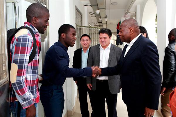 4月9日下午,安哥拉总统基金会主席席尔瓦访问华文学院,看望安哥拉政府青年科技人才班学员。