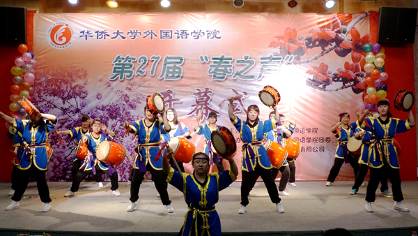 歌舞表演《春暖花开》拉开了整场盛会的序幕。力量与柔美结合的太鼓、流行时尚的韩国舞蹈、英文日语歌串烧、日本舞蹈和茶道等内容丰富、形式多样的表演,展示了外国语学院学子的才艺,展现了中外文化的精妙。