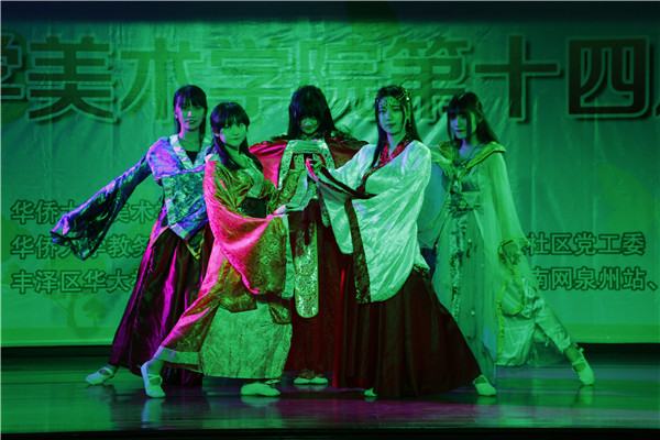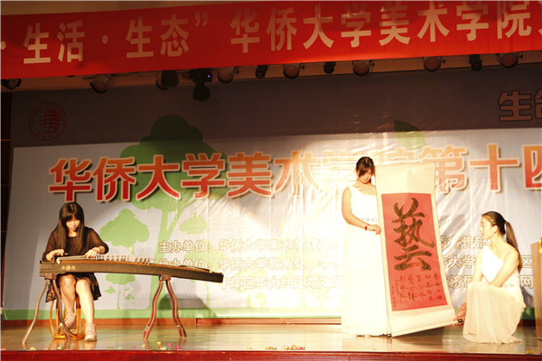 开幕式表演精彩纷呈,美院学子展示自己设计的汉服,令人眼前一亮;独唱《夏天的风》清新明媚,正应证了“热爱生活,融于生态”的主题;压轴节目《艺无止境》巧妙地将传统书法创作与古筝表演相结合,创意十足。