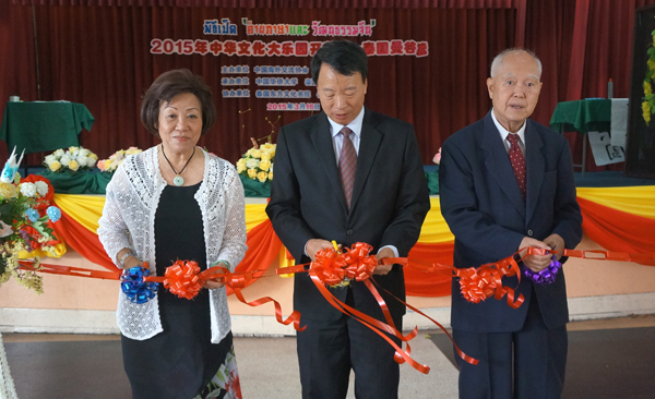 方文国(中)、罗宗正(右)、何韵共同为“2015中华文化大乐园—泰国曼谷营”剪彩