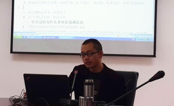 12月23日下午,工学院学习党的十八届四中全会精神宣讲报告会在学院二楼会议室举行。学校宣讲团成员、法学院副教授王方玉博士应邀作了《四中全会与中国的法治路径分析》的报告。院党委书记郑黎鸰主持报告会,学院领导班子、教师及学生党员聆听了报告。