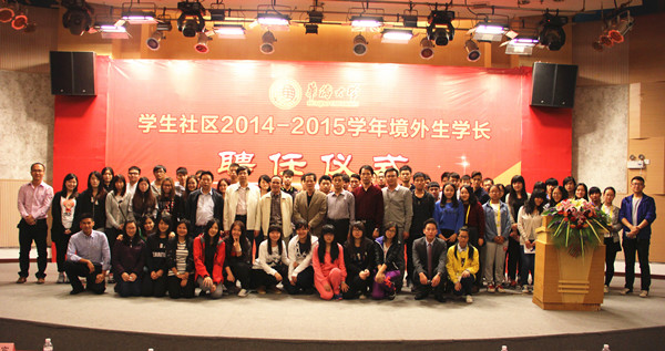 学生社区2014-2015学年境外生学长颁奖及聘任仪式12日晚在明德堂举行。学生处、组织部、宣传部等部门负责人及部分学院负责人出席并为境外生学长颁发奖状、聘书,泉州校区住楼辅导员及两校区100余名境外新老生代表参加仪式。