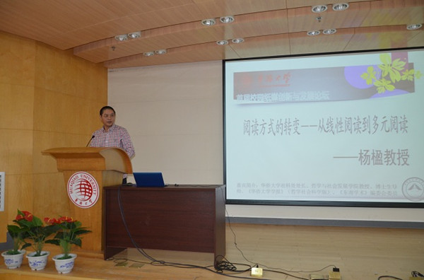 本次论坛围绕“新媒体时代下校园纸媒的创新发展之路----退路还是出路?”主题开展。杨楹首先作了《阅读方式的转变——从线性阅读到多元阅读》的报告。他从现代生活的特点、人类文明传承方式的关系、阅读的存在价值及阅读方式的转变四个方面阐述纸媒的不可替代性,提倡发挥纸媒优点,传承经典,引导大众走向阅读。赵小波在《纸媒有没有出路?》的报告中首先分析了纸媒的现状,指出纸媒的出路不明确。同时,他认为纸媒应该与新媒体融合并做出精品,转压力为创新动力,才能悲壮突围,获得新生重新占领市场。刘清华则以《新时代下如何办好纸媒》为题诙谐地讲述了他15年的记者之路,指出纸媒适合对事件进行深入调查,提出纸媒应该利用新媒体的优势,办有中国特色的媒体。