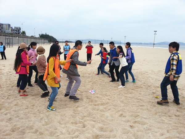 在特邀素质拓展教练员的指导下,单身青年教职工们通过充满趣味的兔子舞、五毛一块、沙滩撕名牌等游戏,促进了对彼此的了解,增进了青年感情,活动现场气氛热烈。