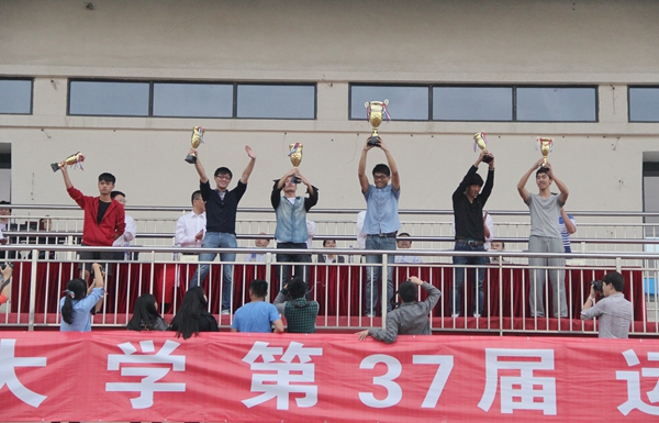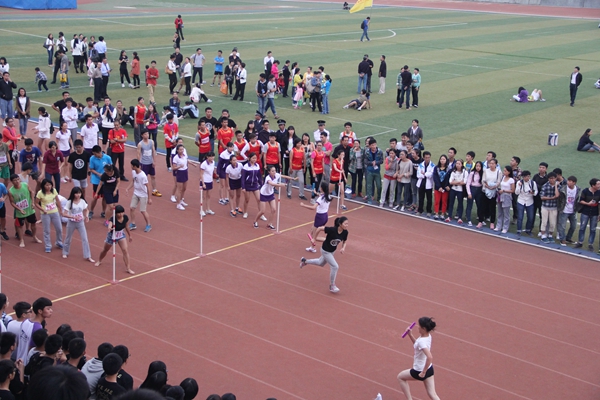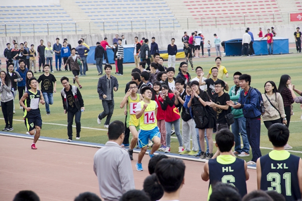 今年运动会新增的项目万米接力,共有11个院代表队参加。最终,土木工程学院以36分32秒61的成绩拔得头筹,机电及自动化学院、化工学院分获第二、三名。