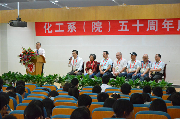 副校长吴季怀在致辞中表示:“50年前,以杨翔翔老师和许碧珍校友为代表的创业者们,放弃了在国内知名学府优越的工作、学习条件,响应国家号召来到华侨大学,历经动荡、复办、搬迁的艰辛,为今日的化工学院奠定了坚实的基础。学院今日的成绩,是一代代化工人奋发有为、开拓创新的结果。”