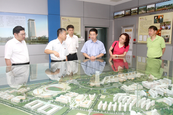 在厦门校区模型室,刘塨向吴劲风一行介绍了厦门校区的建设规划。吴劲风一行还登临行政研发大楼二十六楼俯瞰校园,参观计算机实验室等。