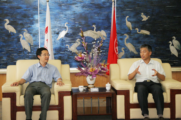 刘塨与吴劲风亲切交谈(秦子忠 摄)