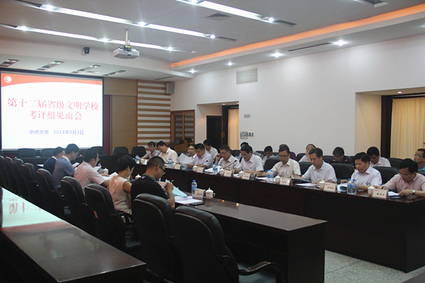 考评期间,考评组审核了书面支撑材料和部分原始档案,召开了教职工座谈会和学生座谈会,进行了个别访问,开展了网络调查;实地考察了泉州校区校史馆、学生社区中心、学生实践基地、文化长廊和厦门校区行政研发大楼、四端文物馆、安防监控视频中心、心理健康教育与辅导中心、图书馆、厦门工程技术研究院、学术交流中心及两校区环境设施等,并观看了文明学校创建特色项目展和华侨大学服务海西成果展。