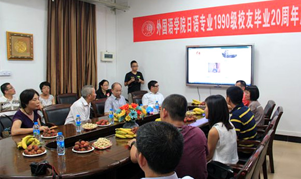7月5日至6日,外国语学院1990级日语、英语专业近30位校友返校,举行“岁月如歌、情怀依旧”毕业20周年欢乐聚,追忆华园求学往事,共叙同窗情、师生情、母校情,畅谈人生感悟,展望美好未来。